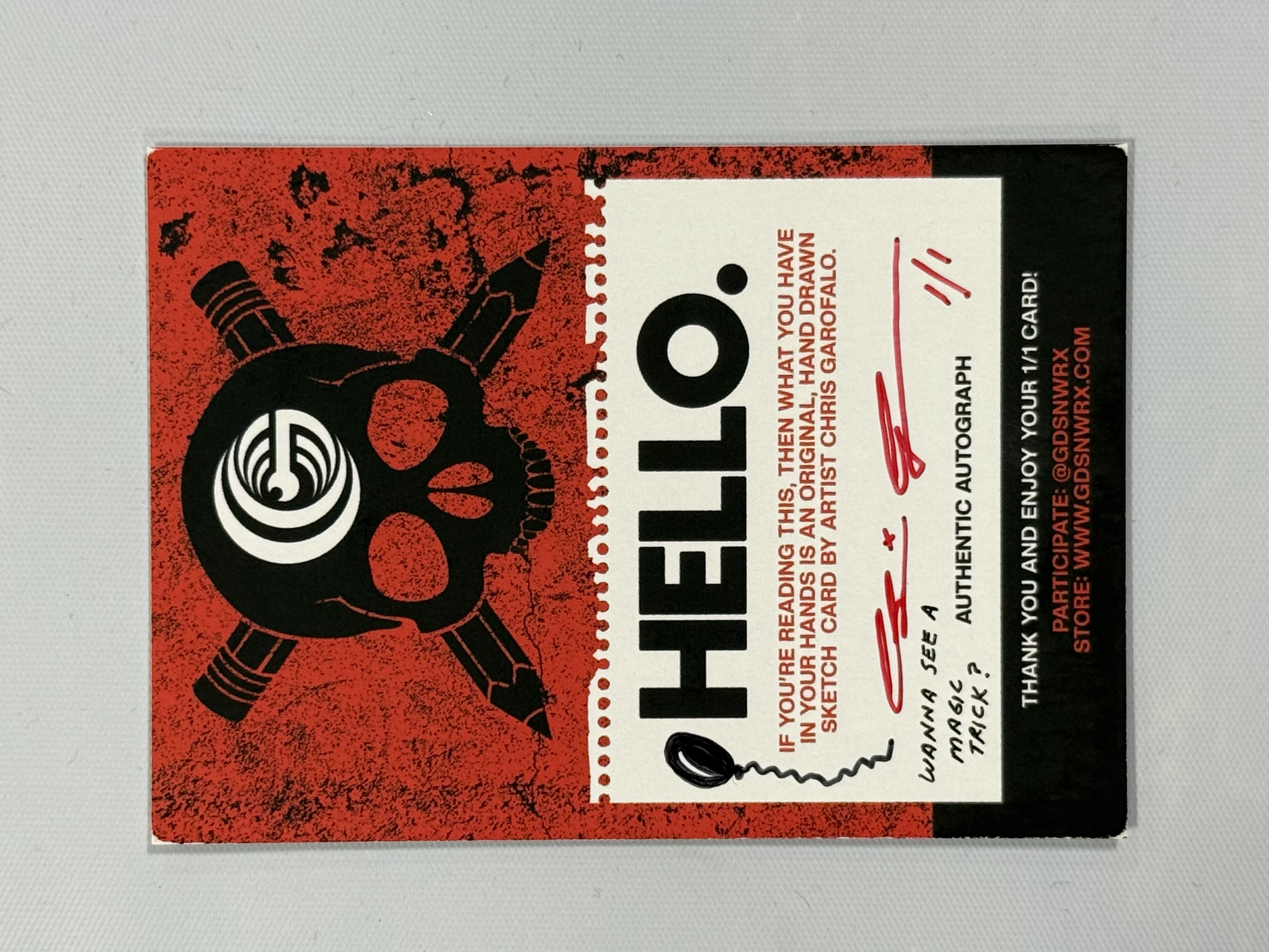 Micron and Sharpie on my personal trading card stock Comes in a penny sleeve and toploader Signed and numbered 1/1